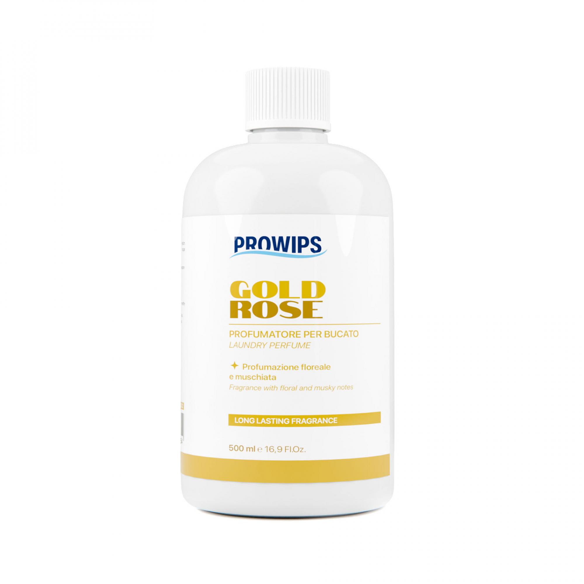 Il profumatore per bucato Gold Rose di ProWips avvolge i capi in una fragranza intensa, elegante e raffinata.